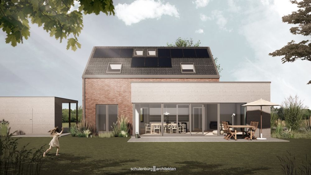 Neubau eines modernen Einfamilienhauses in Buxtehude, geplanter Baustart im Jahr 2026. Das Gebäude wird in KfW-40-NH Standard errichtet und verbindet zeitgemäße Architektur mit hoher Energieeffizienz und nachhaltiger Bauweise.