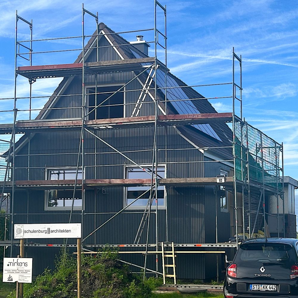 Umbau und energetische Sanierung eines Einfamilienhauses – Modernisierung der bestehenden Bausubstanz und Erweiterung des Wohnraums durch einen funktionalen Anbau.