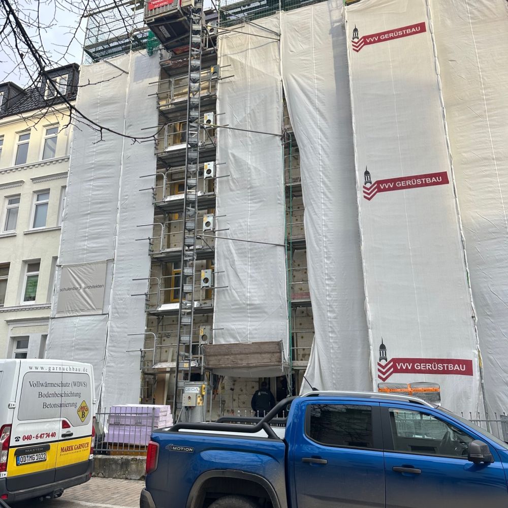 Auf dem bestehenden Gebäude wird zusätzlicher Wohnraum durch eine leichte Dachaufstockung geschaffen. Gleichzeitig erhält die Fassade eine energetische Sanierung inklusive moderner Dämmung und optimierter Anschlüsse, um den Energieverbrauch deutlich zu senken und die Gebäudehülle nachhaltig zu verbessern.